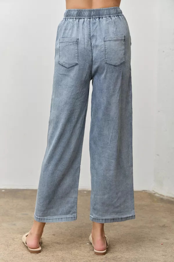 Slip into pure denim bliss with our Denim Drawstring Britches—where comfort meets that coveted vintage vibe. These wide-leg wonders feature a forgiving elastic waistband paired with a cream drawstring tie, so you can dial in your perfect fit. Roomy side and back pockets keep your essentials close, while the soft, vintage-washed fabric feels like a warm hug. Whether you're lounging, running errands, or just vibing, these relaxed-fit trousers are your new go-to for looking effortlessly cool without sacrificing an ounce of comfort.