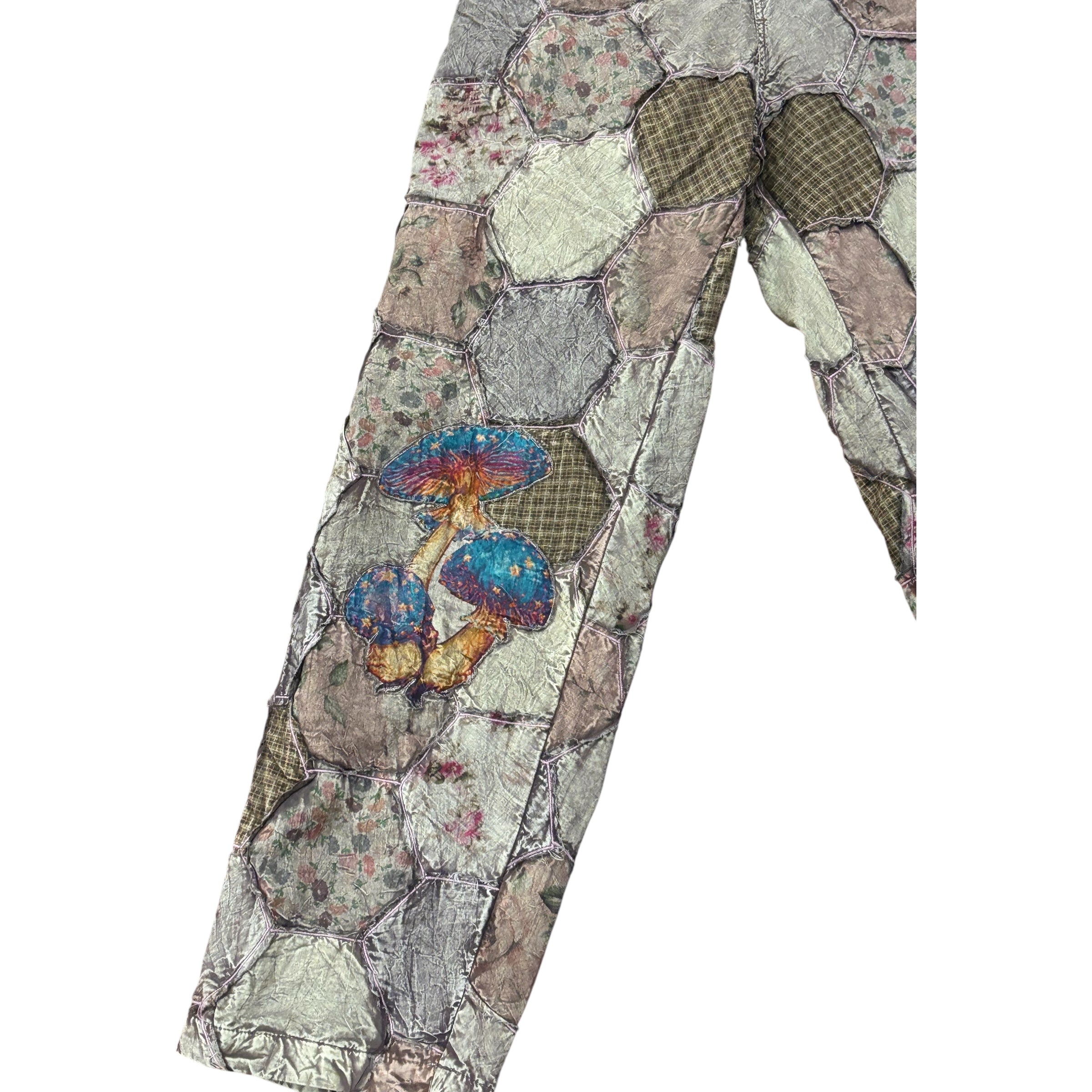 These Paper Lace Artsy Pants in shades of purple feature a quirky patchwork design with cute mushroom patches. The adjustable button waist and elastic back provide both style and comfort. From the playful Paper Lace brand, these pants add a touch of whimsy to any outfit!