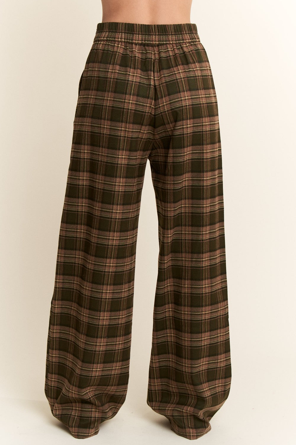 Meet your new favorite pants—plaid wide-leg wonders that prove comfort and style aren't mutually exclusive. These soft dress pants feature a forgiving elastic waistband, front pockets for your essentials, and a fun hip zipper that adds personality to every outfit. Cut to floor-length perfection in sophisticated olive and mocha hues, they're ready for brunch, the office, or anywhere in between. Slip them on and feel the difference quality fabric makes—no compromises, just pure wearable joy.