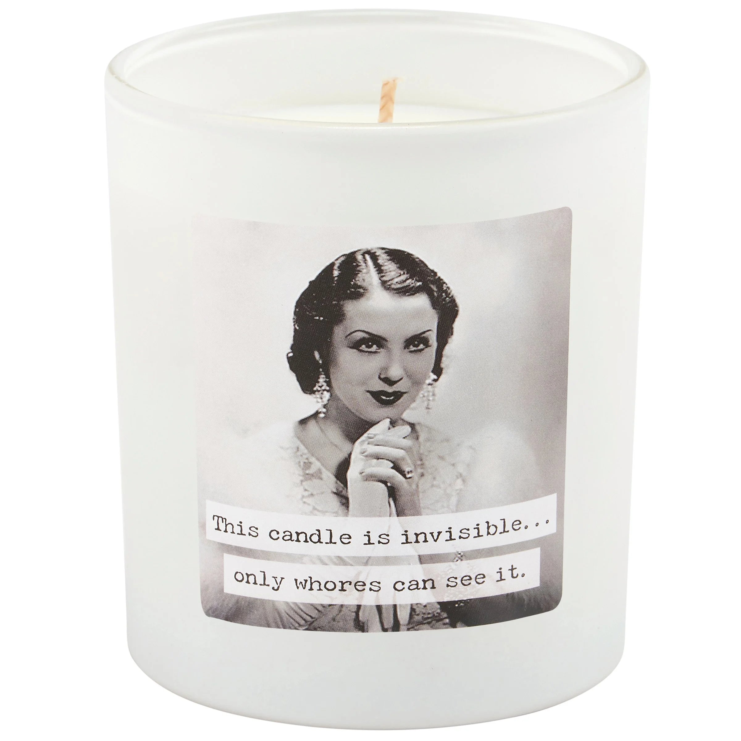 Introducing the Invisible Candle from Trash Talk By Annie—a wickedly witty home accent that doubles as the perfect gag gift. This frosted white glass jar features a stunning double-sided vintage black and white photograph paired with a cheeky sentiment that'll make anyone smile. Crafted with eco-friendly soy-based wax and a clean-burning cotton wick, it delivers 35 blissful hours of calming Lavender Jasmine fragrance. Complete with a protective dust cover and polished plastic lid, this hilarious candle is ideal for adding personality to any space or surprising someone with unexpected humor and genuine comfort.