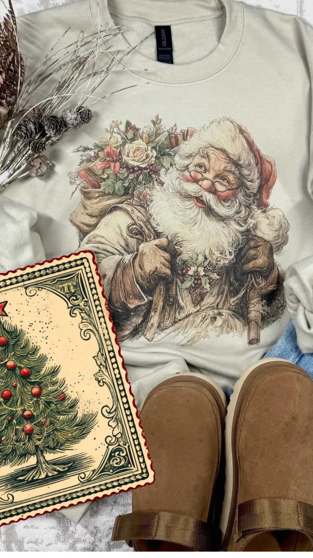 Wrap yourself in holiday nostalgia with this charming vintage Christmas sweatshirt. Featuring a classic old-world Santa graphic that captures the magic of Christmases past, this cozy layer brings warmth and whimsy to your seasonal wardrobe. The soft fleece lining keeps you snug and comfortable, making it perfect for festive gatherings, holiday parties, or lazy winter days at home. A playful nod to timeless holiday traditions that never goes out of style.