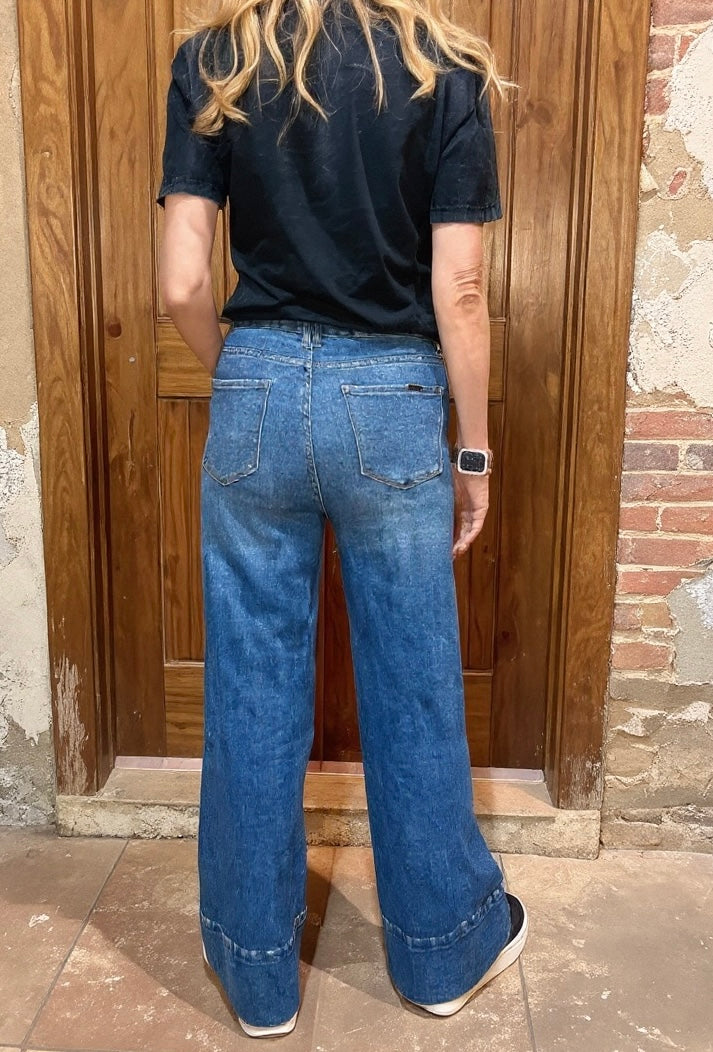 Elevate your style with the L&B Trouser Jeans—where vintage charm meets modern comfort. These high-rise jeans feature tummy control for a smooth silhouette and a curved back yoke that flatters your shape perfectly. The extended hem adds a playful western twist, while reinforced belt loops and a gap-control waistband keep you comfy and secure all day long. Perfect for fashion-forward cowgirls who want denim that moves with them! 32" inseam